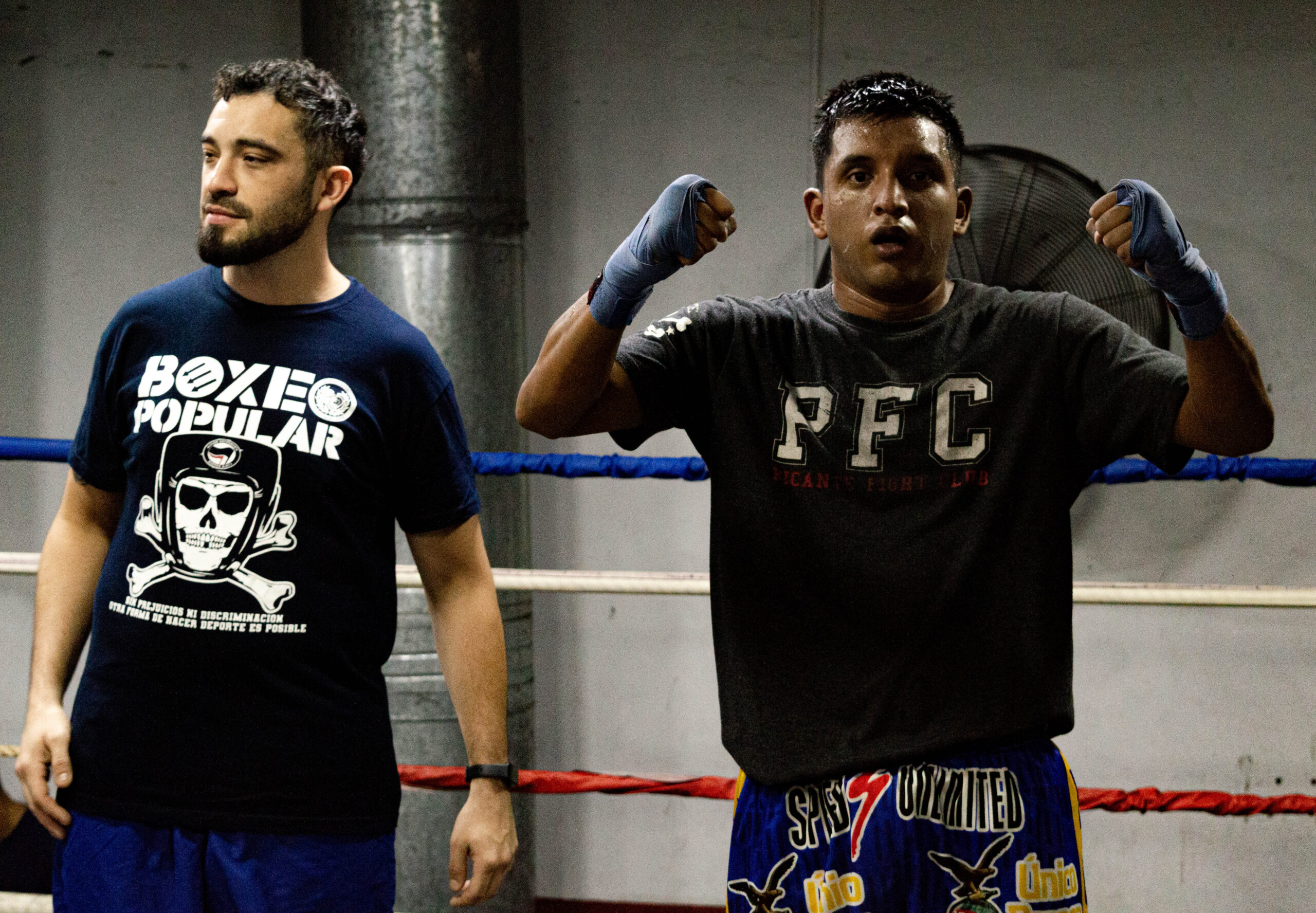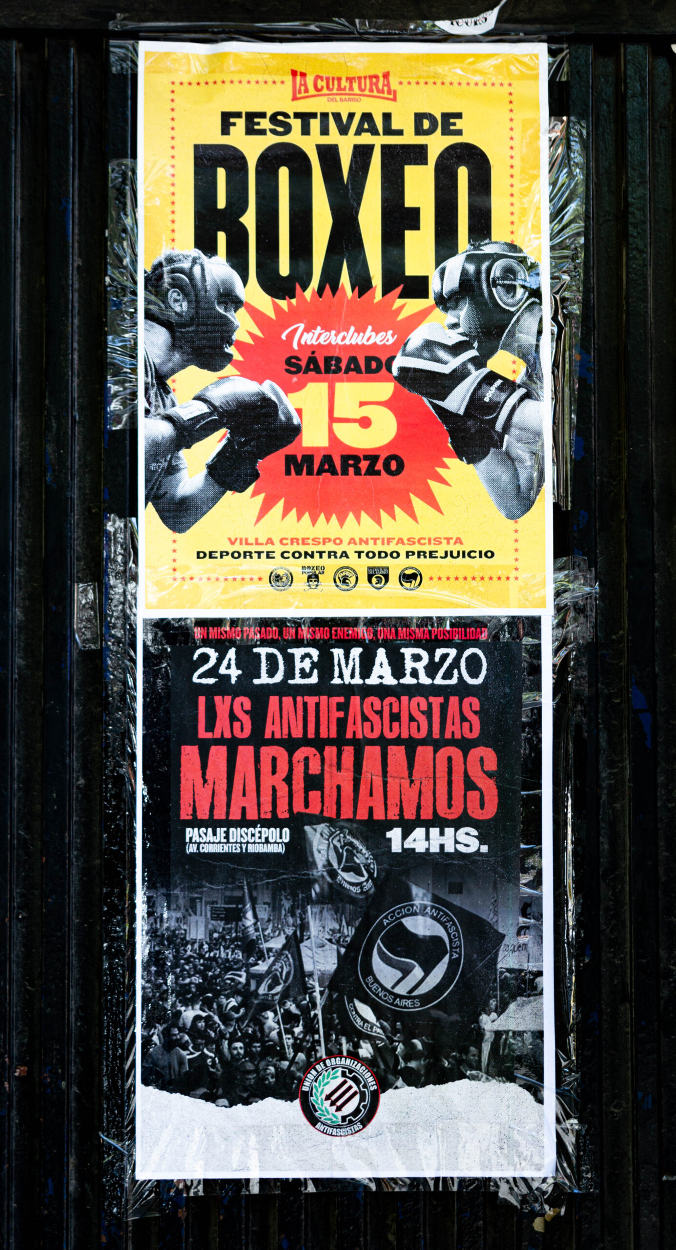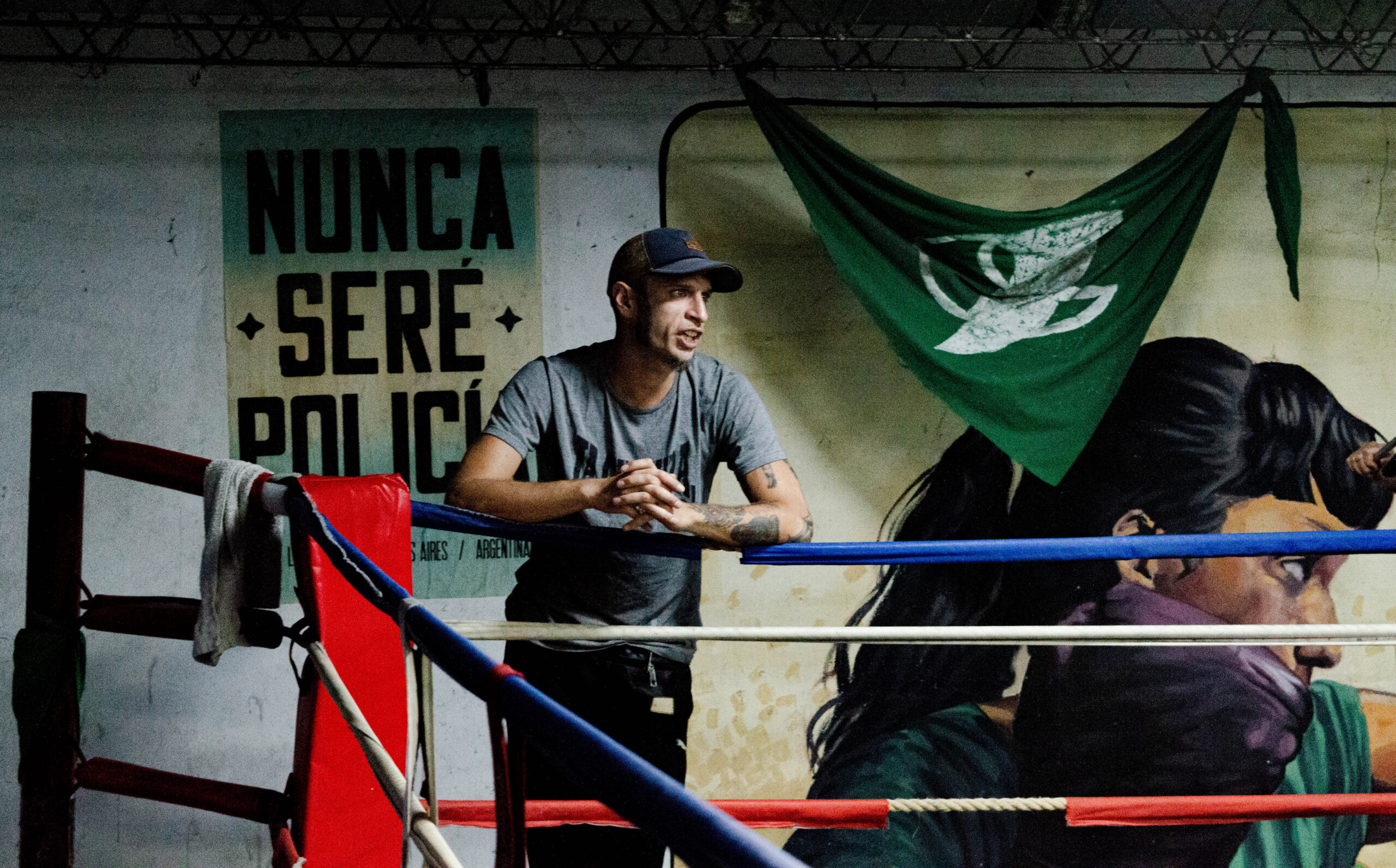 El club social y deportivo "La Cultura del Barrio", fundado por un grupo Acción Antifascista Buenos Aires, promueve un espacio libre de xenofobia, racismo y machismo. Desde una antigua fábrica de Villa Crespo, revitaliza los clubes de principios del siglo XX y se ha consolidado como referente de la escena antifascista, tanto local como internacional. En este registro de Brújula, presentamos el festival de boxeo interclubes realizado el 15 de marzo, con la participación de clubes de CABA y Gran Buenos Aires, rodeados de posters de Agustín Tosco, pañuelos verdes y carteles anti-yuta.