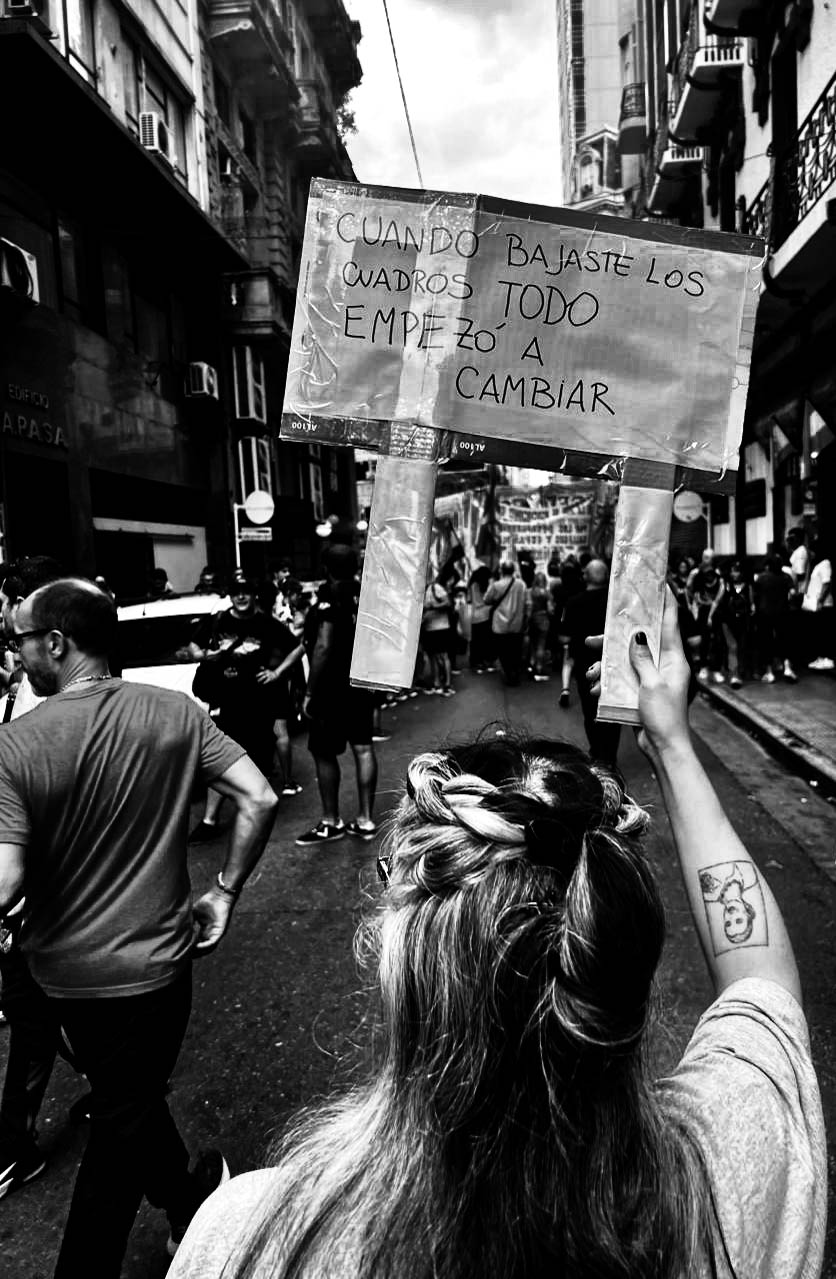 Con la llegada de una nueva estación, flores y luces más largas se superponen con la dureza de la protesta. La cámara de Melisa Gutiérrez recorta esos instantes, deteniendo el tiempo en un cruce donde política y calle se encuentran (otra vez).