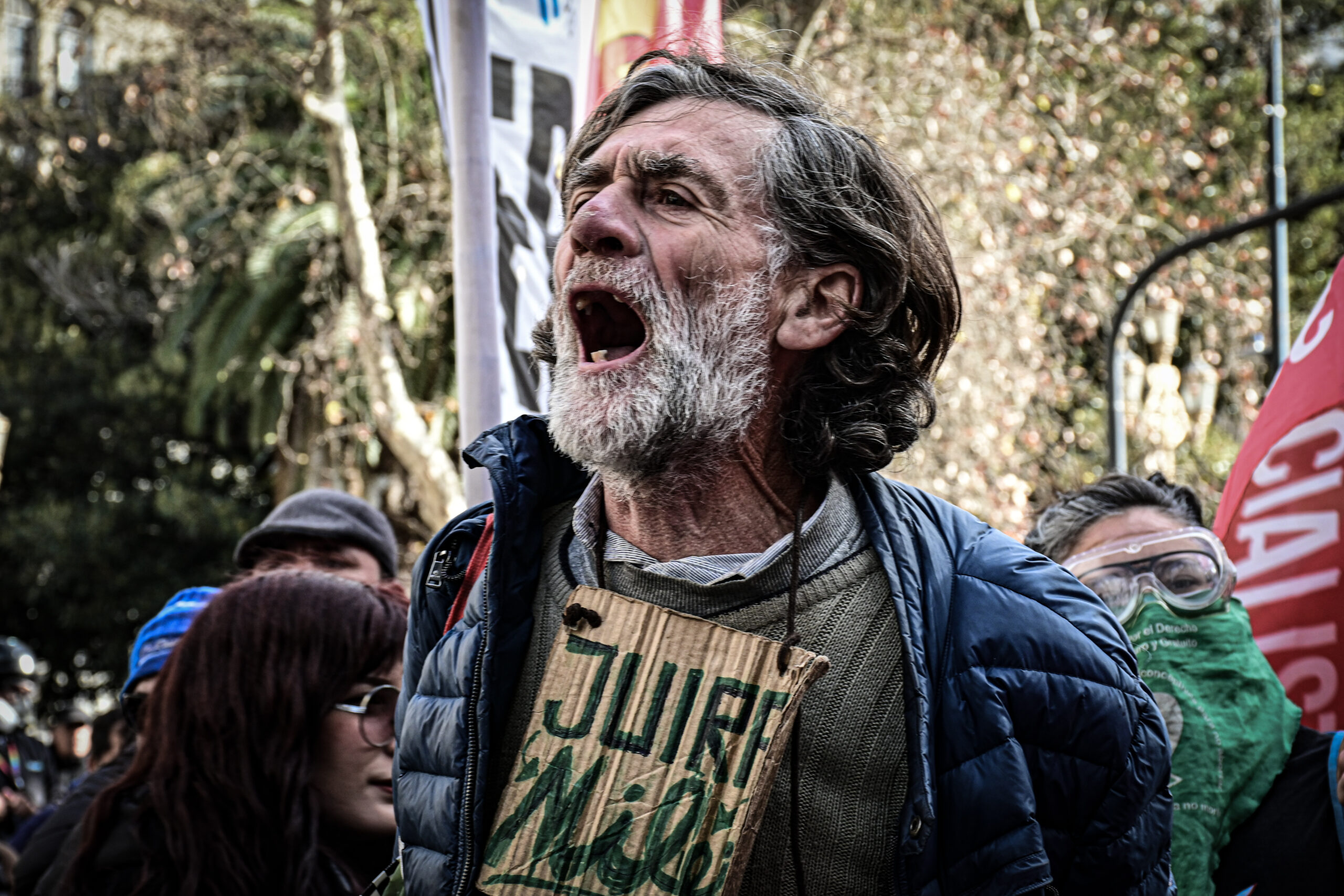 La ciudad se transforma en escenario de consignas, pasos y banderas, con Javier Milei en el centro de la tensión. En la primera línea se hacen presentes jubilados, personas con discapacidad, trabajadores de la salud, sindicatos, estudiantes y militantes de la economía popular, tejiendo una fuerza colectiva que ocupa la calle frente al ajuste.